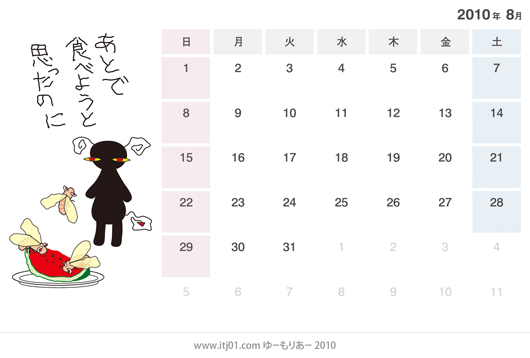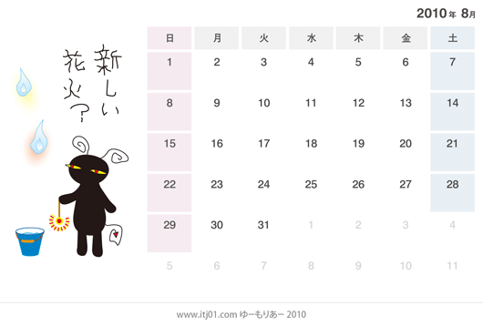 2010年8月の卓上カレンダーのイラスト(無料)