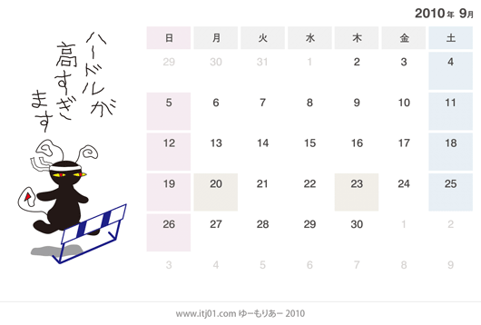 イラストと言葉で綴るユーモア壁紙サイトゆーもりあーオリジナルの卓上カレンダーのイラストです。 カレンダーのサイズは普通のハガキの大きさ(ポストーカードサイズ)です。 ハガキサイズだけど、A4用紙にプリントしても大丈夫だと思います。プリント位置を調節してみてください。 ご利用無料なので、必要な月だけでも、全部の月でも、何枚でも、好きなだけプリントして使ってください。 このページにある画像は、デザイン確認用のサムネイルなので、それぞれの画像をクリックした先にあるプリント用の大きな画像をご利用ください。(カレンダーの使い方★PCの壁紙としても使えます。