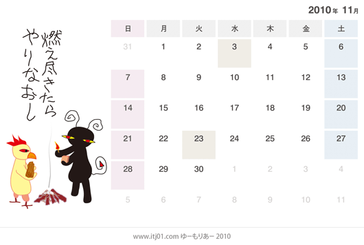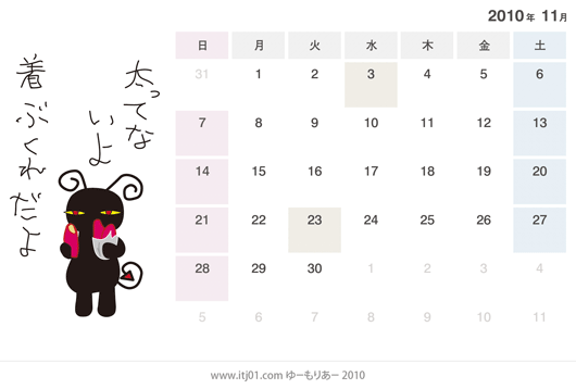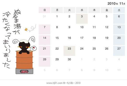2010年11月の卓上カレンダーのイラスト(無料)
